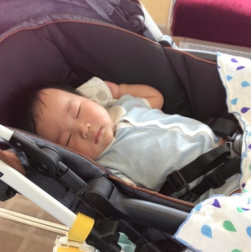 自宅に戻るタイミングは昼寝のタイミングでベビーカーで移動しました。